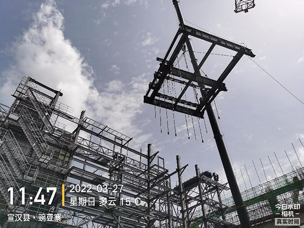 迪尔集团有限公司第三公司承建的宣汉县生活垃圾焚烧发电项目,1#锅炉汽包和顶板梁分别于2022年3月27日10时27分、3月27日12点7分顺利吊装完成。