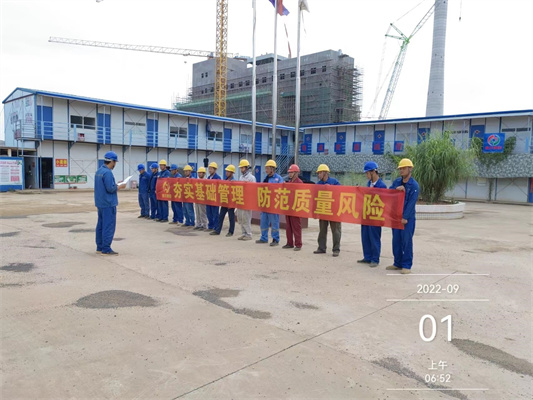 为响应以“夯实基础管理  防范质量风险”质量月活动主题,树立全员质量意识,强化质量管理,提升工程质量。20220901日第三公司广西来宾项目部组织所有管理人员及施工人员召开了质量月活动动员签字大会,大会上项目部项目总工带领大家一并学习了质量月活动内容,并部署了以后施工中质量管理方向,会后全员签字。并将签字横幅悬挂施工现场,营造了活跃的质量氛围,同时也象征着第三公司广西来宾项目部质量月活动全面启动。