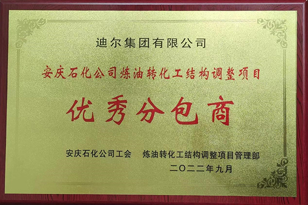 近日,由迪尔集团有限公司第一公司承建的中石化安庆高新区石化热电联产扩建项目在业主阶段性总结表彰大会上,荣获“优秀分包商”荣誉称号;项目经理张权荣获“优秀项目经理”荣誉称号。