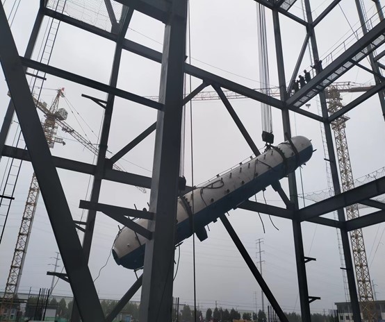 新沂阳光热电项目部1#锅炉汽包顺利吊装就位