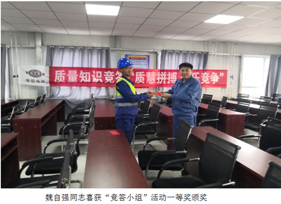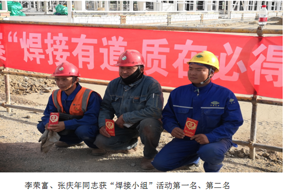 活动共分4个小组进行,分别为竞答小组、样板小组、砌筑小组、焊接小组。我单位积极响应业主质量月号召,分别参加了竞答小组、焊接小组竞赛活动。活动结束后,项目部参加人员取得了骄人的成绩:于乘淼、魏自强同志参加的竞答小组喜获第一名,李荣富、张庆年同志分别获得焊接小组比赛的第一名、第二名,为公司争光添彩,彰显了公司在安装技术方面的实力。