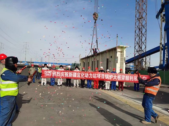 新疆宜化化工项目锅炉大板梁顺利吊装就位
