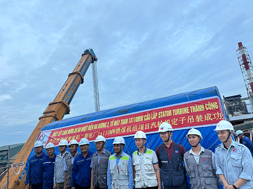 2025年8月19日18点13分,由迪尔集团国际工程公司承建的越南那阳二期1X110MW燃煤机组EPC项目汽轮发电机定子顺利精准吊装就位。