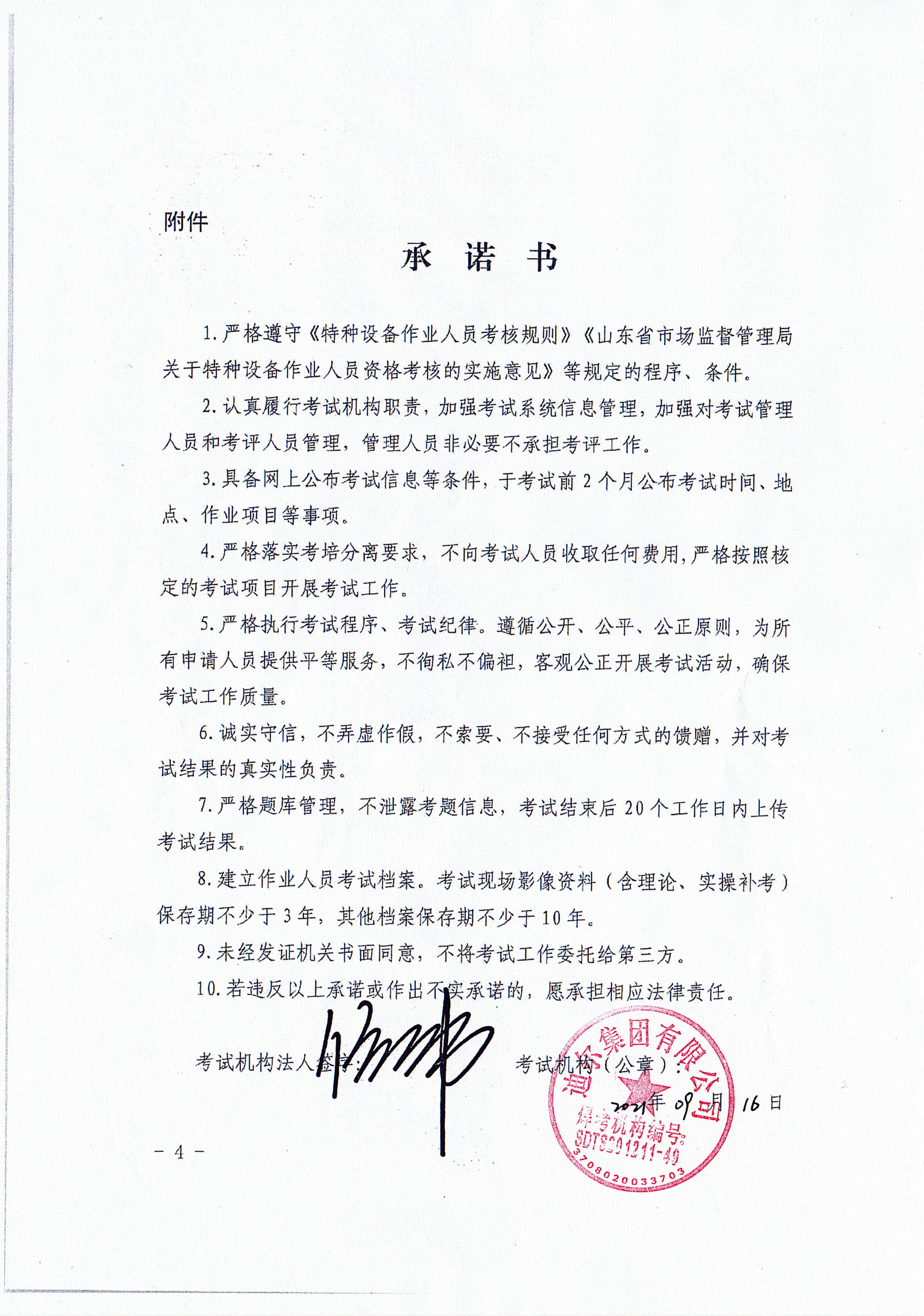 迪尔集团有限公司焊考机构社会公开承诺书