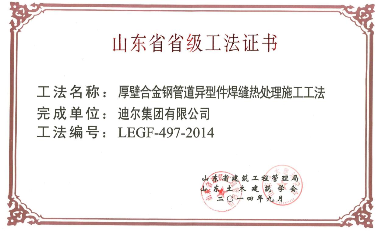 公司荣获山东省省级“厚壁合金钢异型件焊口热处理工法”