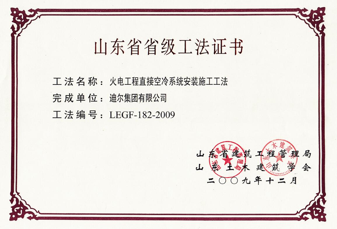 公司荣获山东省省级“火电工程直接空冷系统安装施工工法”