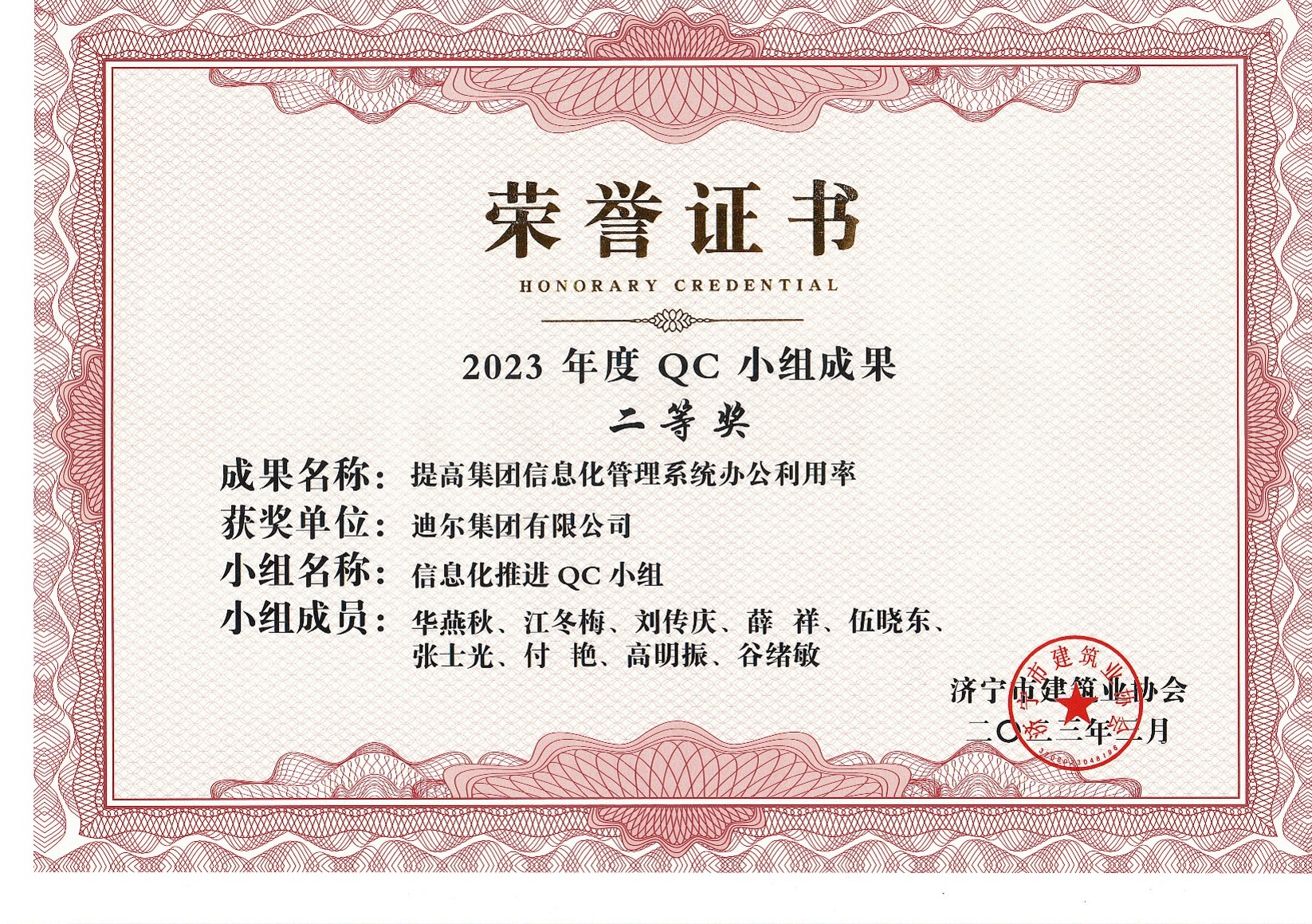 公司荣获2023年荣获市级QC成果提高集团信息化管理系统办公利用率