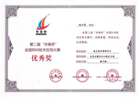 公司荣获第二届“华春杯”全国BIM技术应用大赛优秀奖
